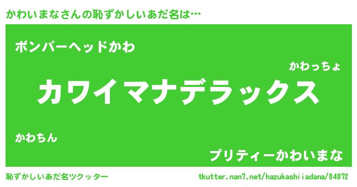 | ヒーロー風カッコイイあだ名 | 『仮面カワダー』『究極戦士カワイマナ』 |