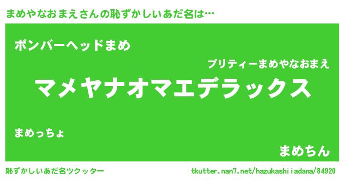 | 意味不明あだ名 | 『自称まめやなおまえ』 |