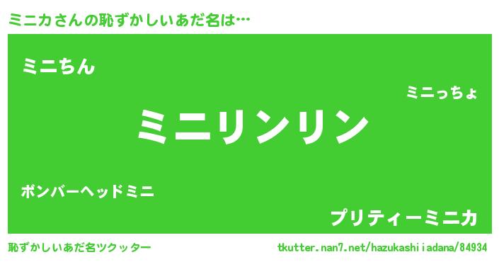 | 男性向けラノベタイトル風あだ名 | 『ミニカスレイヤー』『ミニカの憂鬱』 |