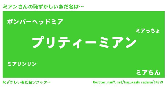 | ヘコむあだ名 | 『ミアもー』『ミアン(苦笑)』 |