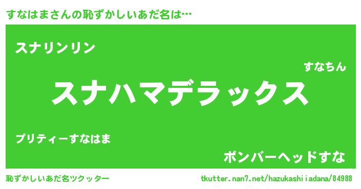 | ヒーロー風カッコイイあだ名 | 『究極戦士スナハマ』『炎刃騎士スナ』 |