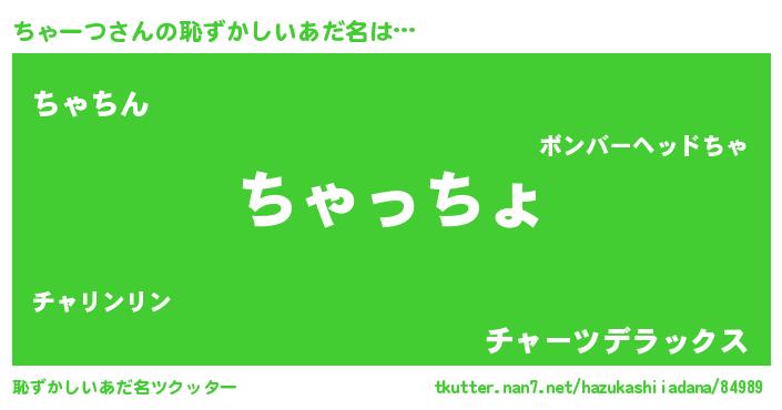 | ヒーロー風カッコイイあだ名 | 『ウルトラちゃーつマン』『ネオチャーツ』 |
