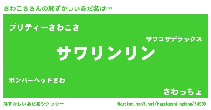 | 男性向けラノベタイトル風あだ名 | 『緋弾のサワコサ』『さわこさの憂鬱』 |