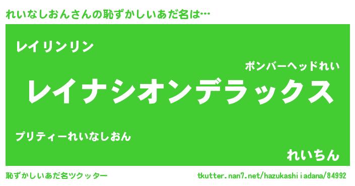 | ヘコむあだ名 | 『れいっぺ』『れいなしおん(遠い目)』 |