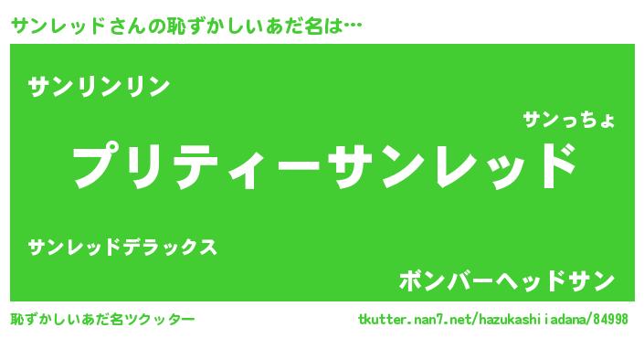 | 男性向けラノベタイトル風あだ名 | 『サンレッドに滅ぼされるだけの簡単なお仕事です』 |