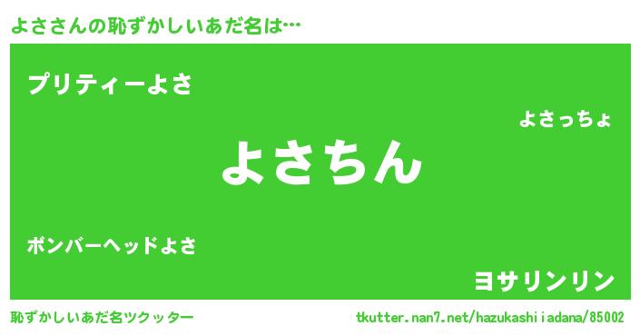 | ヘコむあだ名 | 『よさ(苦笑)』『よさもー』『つくし』 |