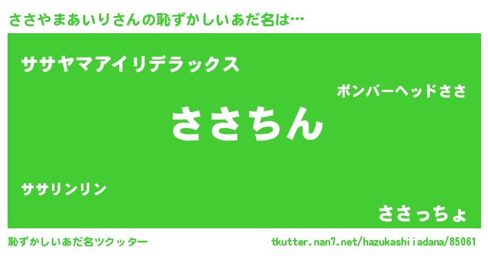 | 意味不明あだ名 | 『永久保存ささやまあいり』 |