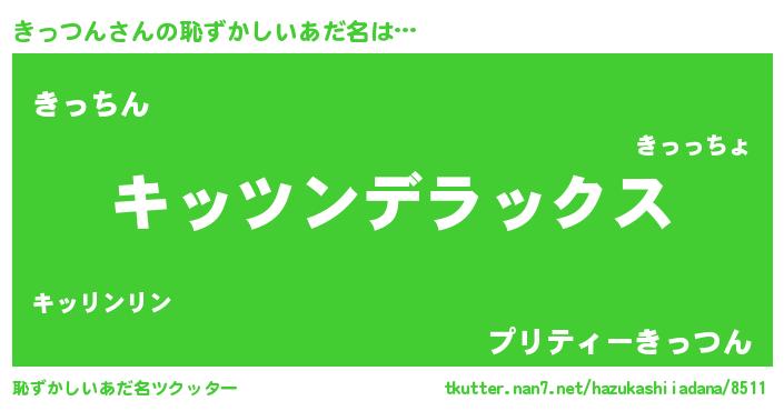 | ヒーロー風カッコイイあだ名 | 『最強戦士キッツン』『仮面キッダー』 |