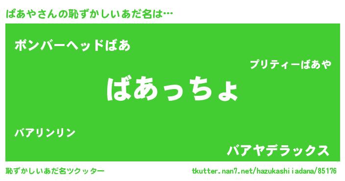 | ポケモン風あだ名 | 『バアヤダネ』『バックウザ』 |