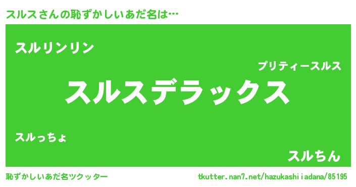 | 女子向けラノベタイトル風あだ名 | 『闇のスルス』『スルスは平凡を望む』 |