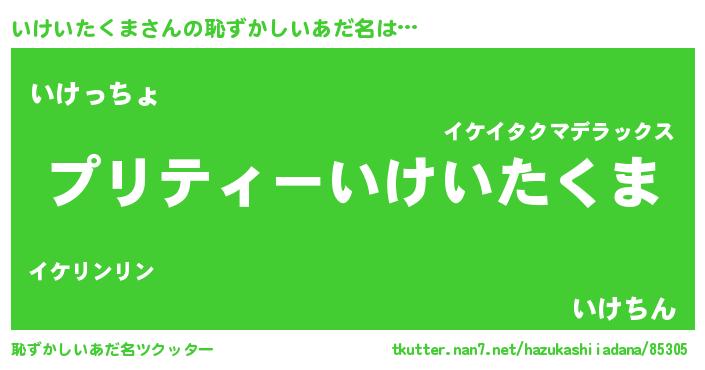 | 伝説のあだ名 | 『伝説のスナイパーいけいたくま』 |