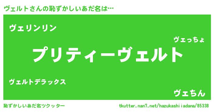 | ヒーロー風カッコイイあだ名 | 『スーパーヴェルト』『幻影騎士ヴェ』 |