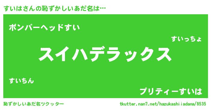 | 欧米人風あだ名 | 『ケンブリッジすいは』『ダニエルすいは』 |