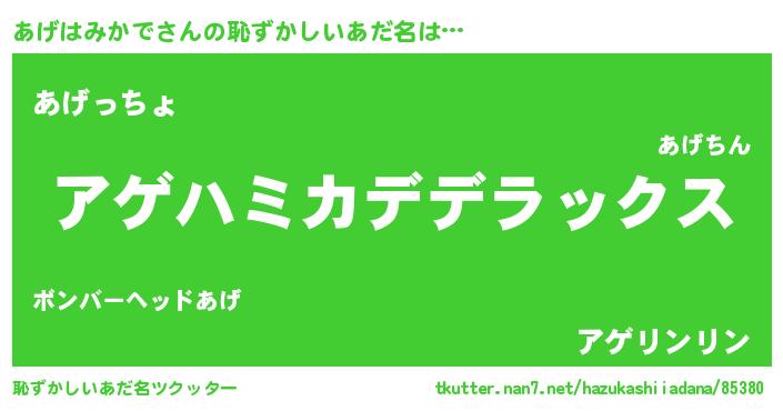 | 意味不明あだ名 | 『住所不定無職あげはみかで(39歳)』 |