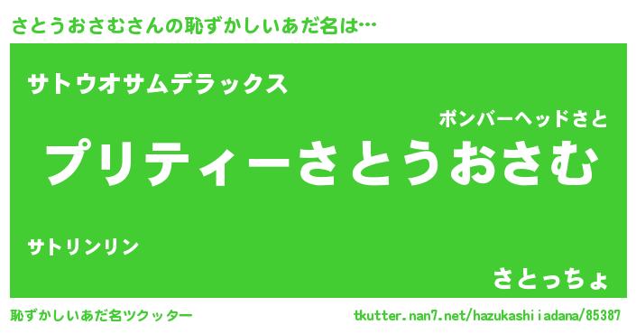| 男性向けラノベタイトル風あだ名 | 『はたらくさとうおさむさま!』 |