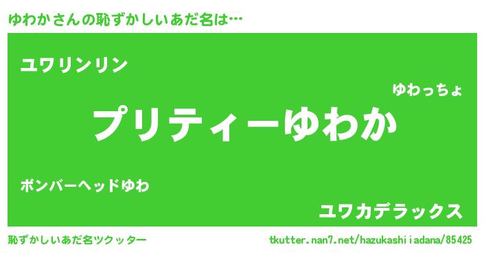 | 意味不明あだ名 | 『ペロリンゆわか』『自称ゆわか』 |