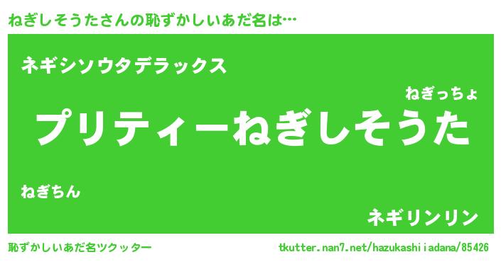 | 男性向けラノベタイトル風あだ名 | 『うちのねぎしそうたが世界を掌握している!』 |