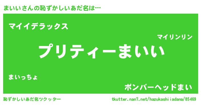 | 意味不明あだ名 | 『めかぶ科まいい属』『ペロリンまいい』 |