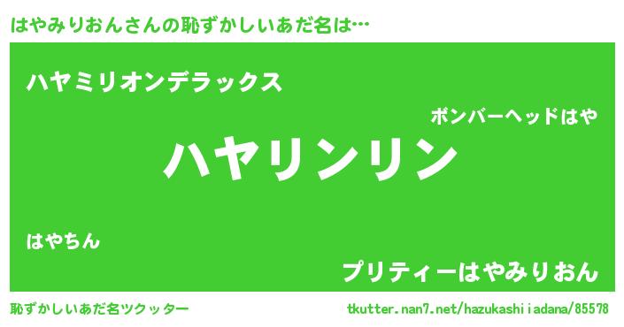 | 男性向けラノベタイトル風あだ名 | 『ダンジョンにはやみりおんを求めるのは間違っているだろうか』 |