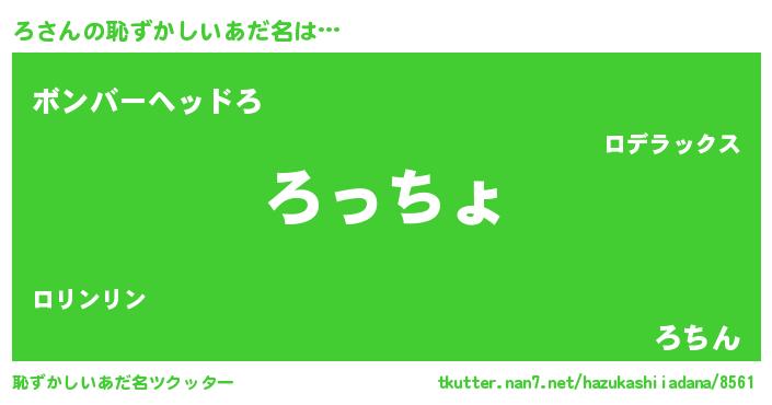| ヘコむあだ名 | 『なまこ酢』『ろ(震え声)』『ろっぺ』 |