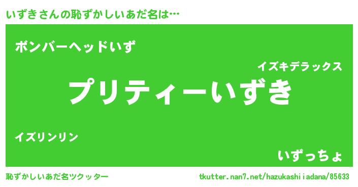 | 男性向けラノベタイトル風あだ名 | 『いずきの憂鬱』『イズキスレイヤー』 |