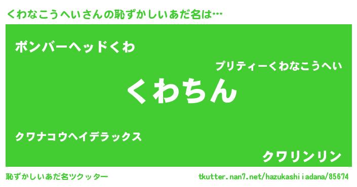 | ヘコむあだ名 | 『くわなこうへい(笑)』『くわっ子』 |