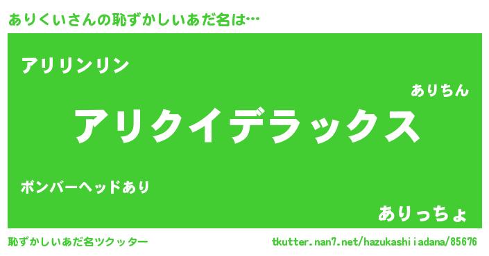 | ヒーロー風カッコイイあだ名 | 『仮面アリダー』『究極戦士アリクイ』 |