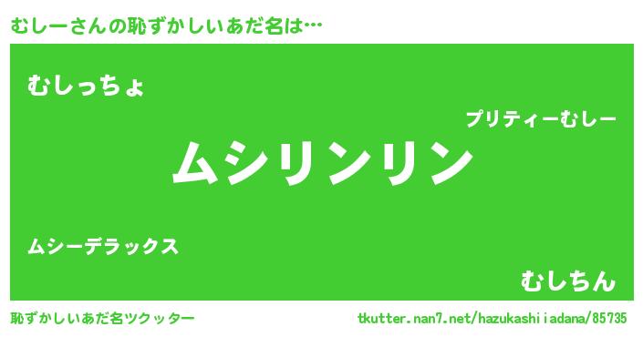 | 男性向けラノベタイトル風あだ名 | 『むしーの嫁は女の子じゃないと思った?』 |