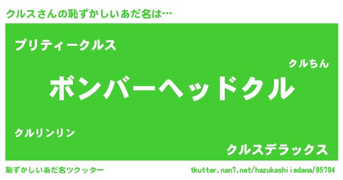 | ヘコむあだ名 | 『クルふぇ~』『クルス(爆)』 |
