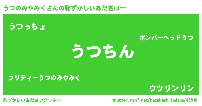 | ヒーロー風カッコイイあだ名 | 『仮面ウツダー』『ネオウツノミヤミク』 |