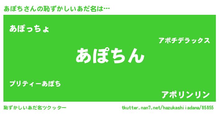 | 意味不明あだ名 | 『永久保存あぽち』『あぽちフォーエバー』 |