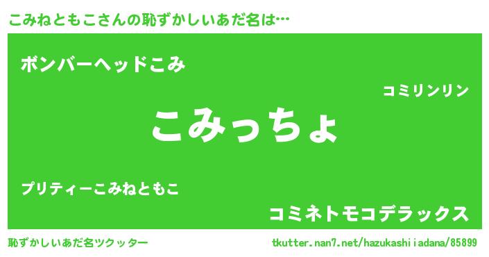 | 男性向けラノベタイトル風あだ名 | 『この素晴らしい世界にこみねともこを!』 |