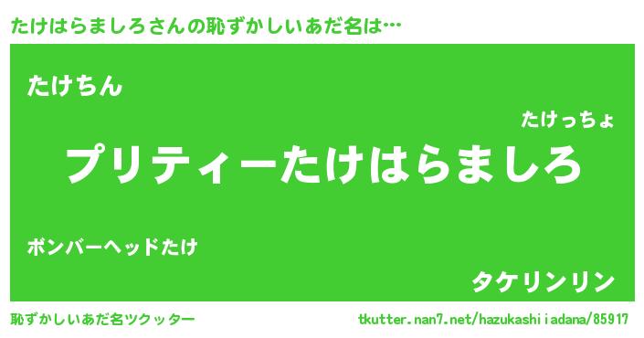 ヘコむあだ名 | 『たけもー』『たけはらましろ(震え声)』 |
