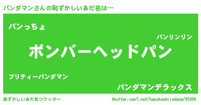 | ヒーロー風カッコイイあだ名 | 『友情の使者パンダマン』『魔戒騎士パン』 |