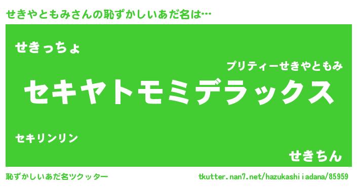 | 肩書あだ名 | 『せきやともみ船長』『せきやともみ教官』 |
