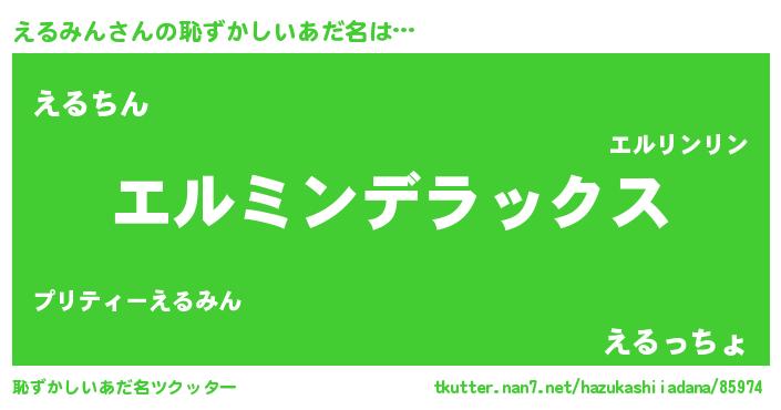 | 意味不明あだ名 | 『自称えるみん』『永久保存えるみん』 |