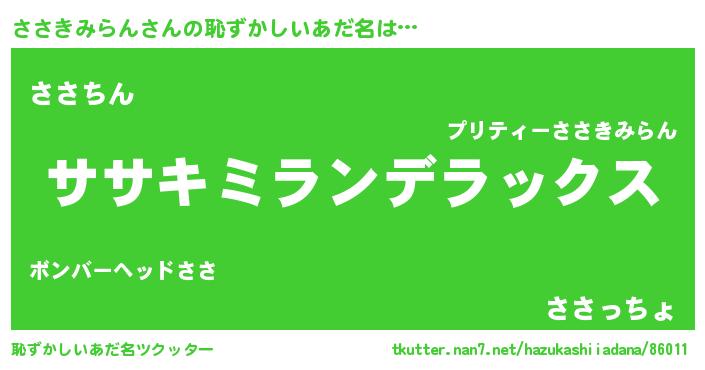ヘコむあだ名 | 『ささきみらん(爆)』『酢こんぶ』 |