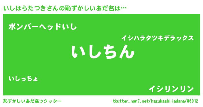 | 胡散臭い通販商品みたいなあだ名 | 『前代未聞の健康食品…その名も「いしはらたつき」』 |