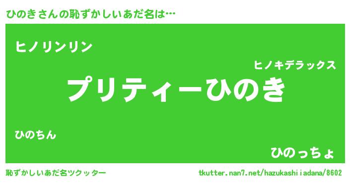 | 男性向けラノベタイトル風あだ名 | 『ヒノキアートオンライン』 |