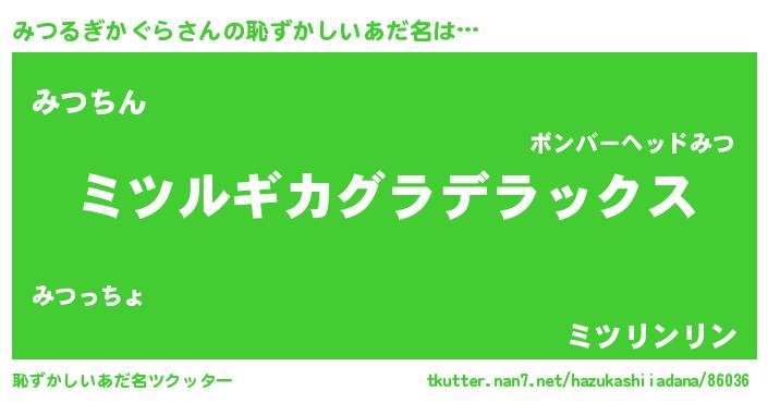 | 意味不明あだ名 | 『住所不定無職みつるぎかぐら(14歳)』 |