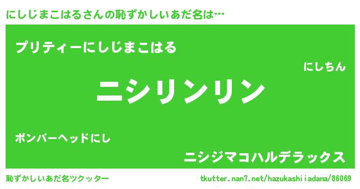 | 意味不明あだ名 | 『とにかく怪しいにしじまこはる』 |