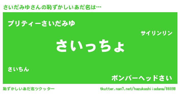 | 肩書あだ名 | 『さいだみゆ上級大将』『さいだみゆ教授』 |