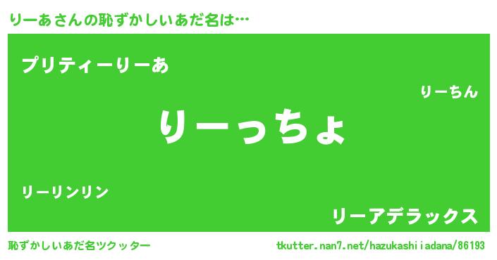 | 意味不明あだ名 | 『りーあフォーエバー』『ペロリンりーあ』 |