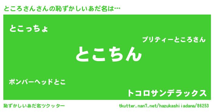 | 意味不明あだ名 | 『永久保存ところさん』『自称ところさん』 |