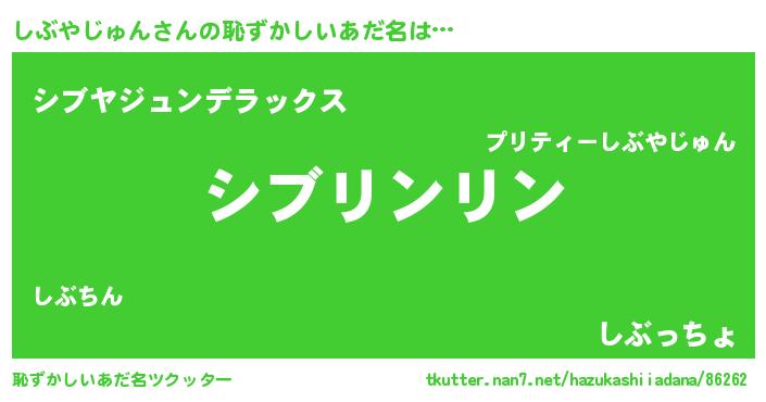 | 男性向けラノベタイトル風あだ名 | 『シブヤジュンスレイヤー』 |