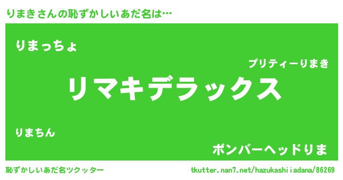 | ヒーロー風カッコイイあだ名 | 『超時空戦士リマキ』『正義の使者りまき』 |