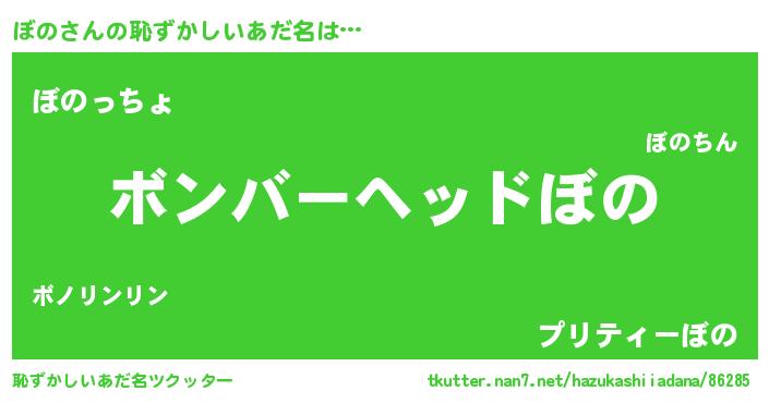 | ヒーロー風カッコイイあだ名 | 『慈愛の使者ぼの』『ウルトラぼのマン』 |