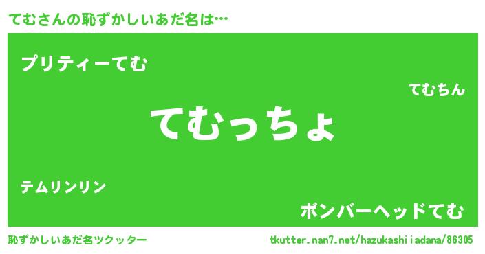 | 意味不明あだ名 | 『てむフォーエバー』『ペロリンてむ』 |