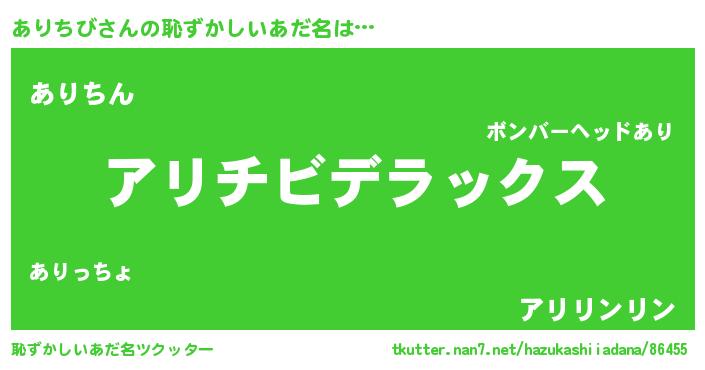 | ヘコむあだ名 | 『ありちび(遠い目)』『ありっぺ』 |