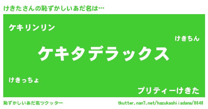 | ヘコむあだ名 | 『けきを』『けきっふぃ~』『豆乳』 |